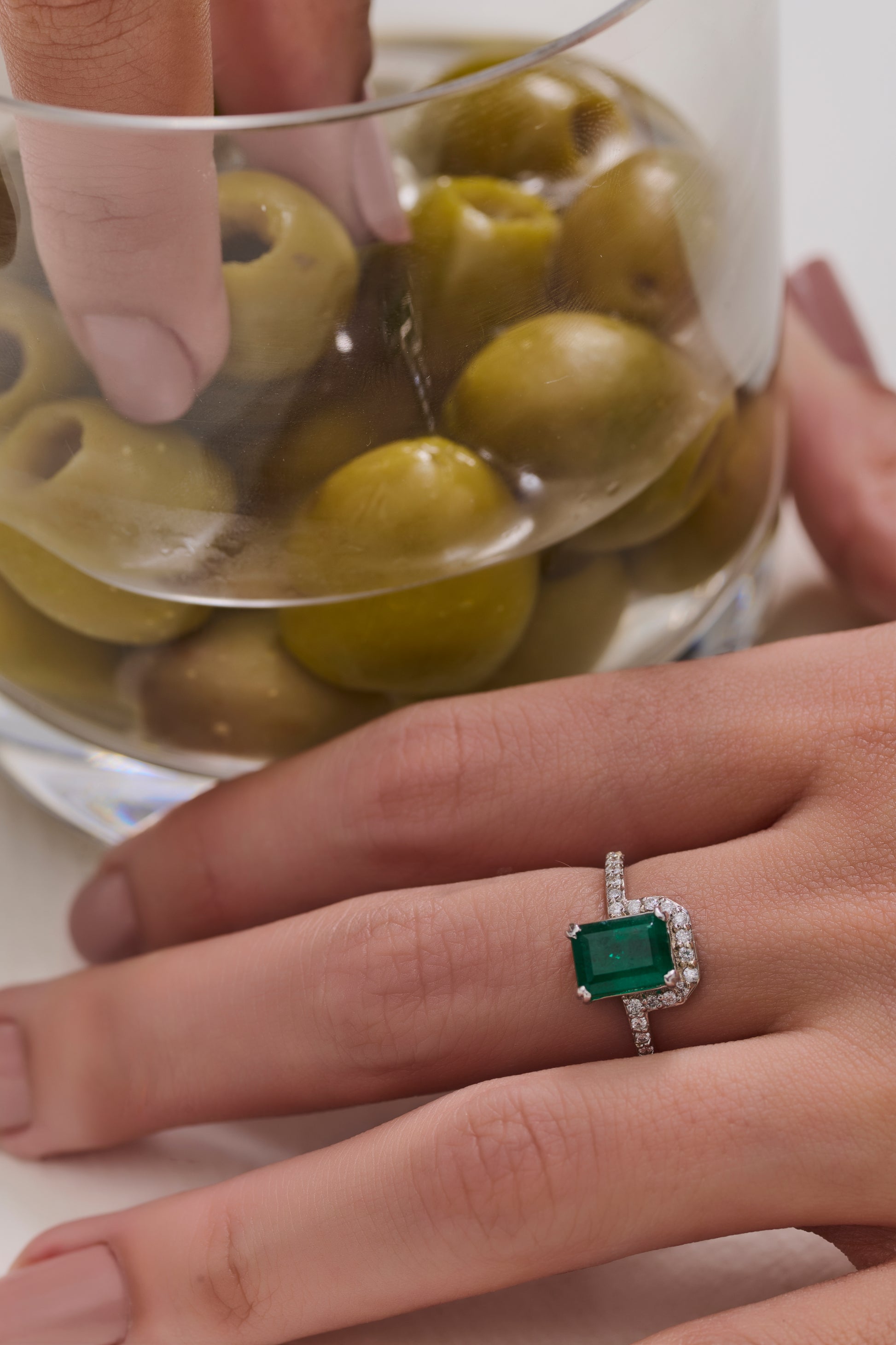 Imponente e original, este anel em ouro branco 18K tem como protagonista uma esmeralda natural de lapidação octogonal 6x8 mm, cuja tonalidade verde intensa ilumina a peça. Ao redor, 24 brilhantes de 0,009 pontos cada delicadamente cravejados criam um halo de luz que realça ainda mais a pedra central. Um design clássico com toque contemporâneo, perfeito para quem busca uma joia elegante, cheia de personalidade e brilho atemporal.