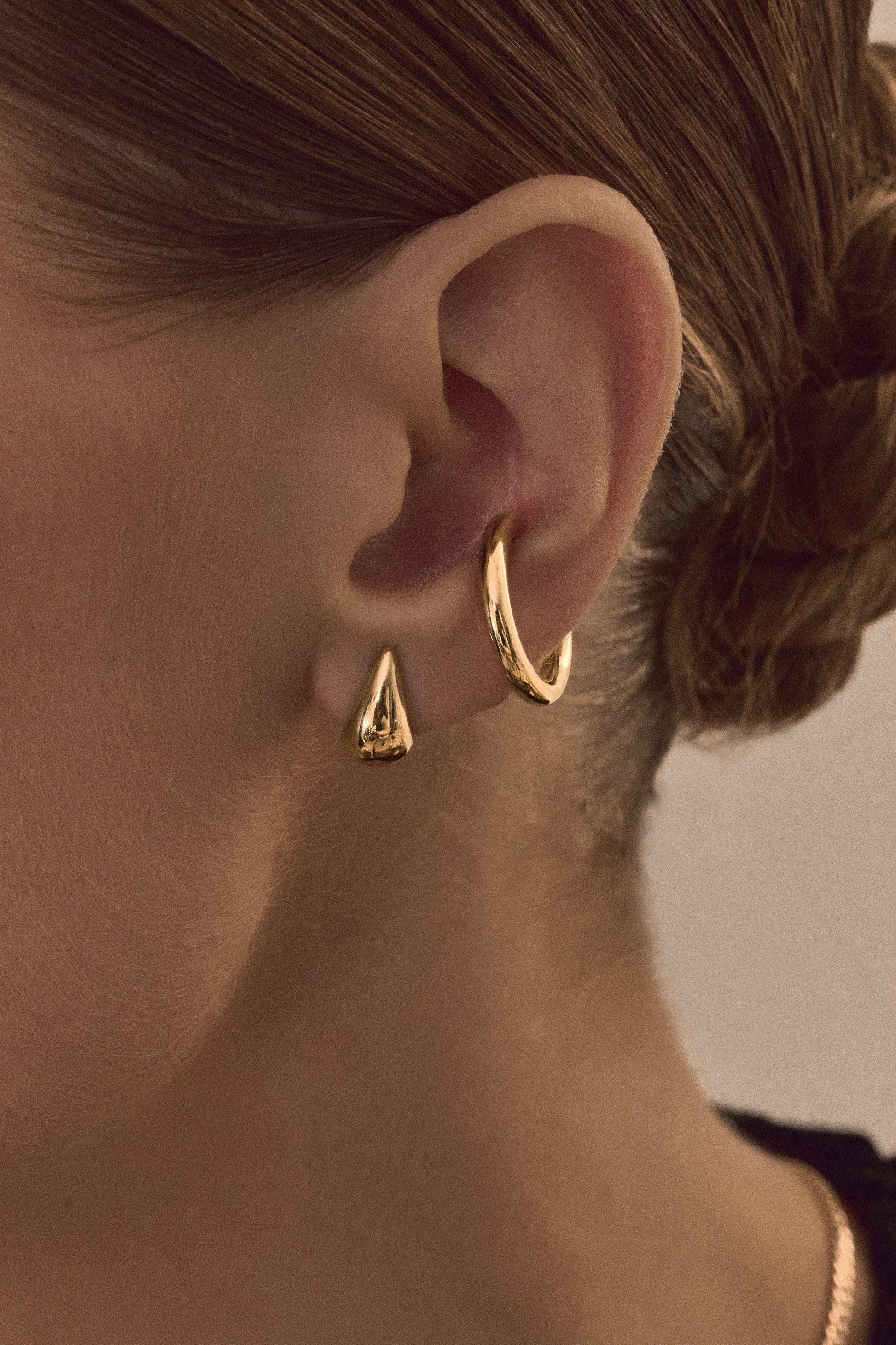 Puro e essencial, o Brinco Gota revela a beleza da forma em sua simplicidade. Lapidado apenas pela luz, seu contorno liso em ouro 18k reflete delicadeza e força, como a gota que guarda o instante do movimento. Uma joia atemporal, feita para iluminar com sutileza e elegância.