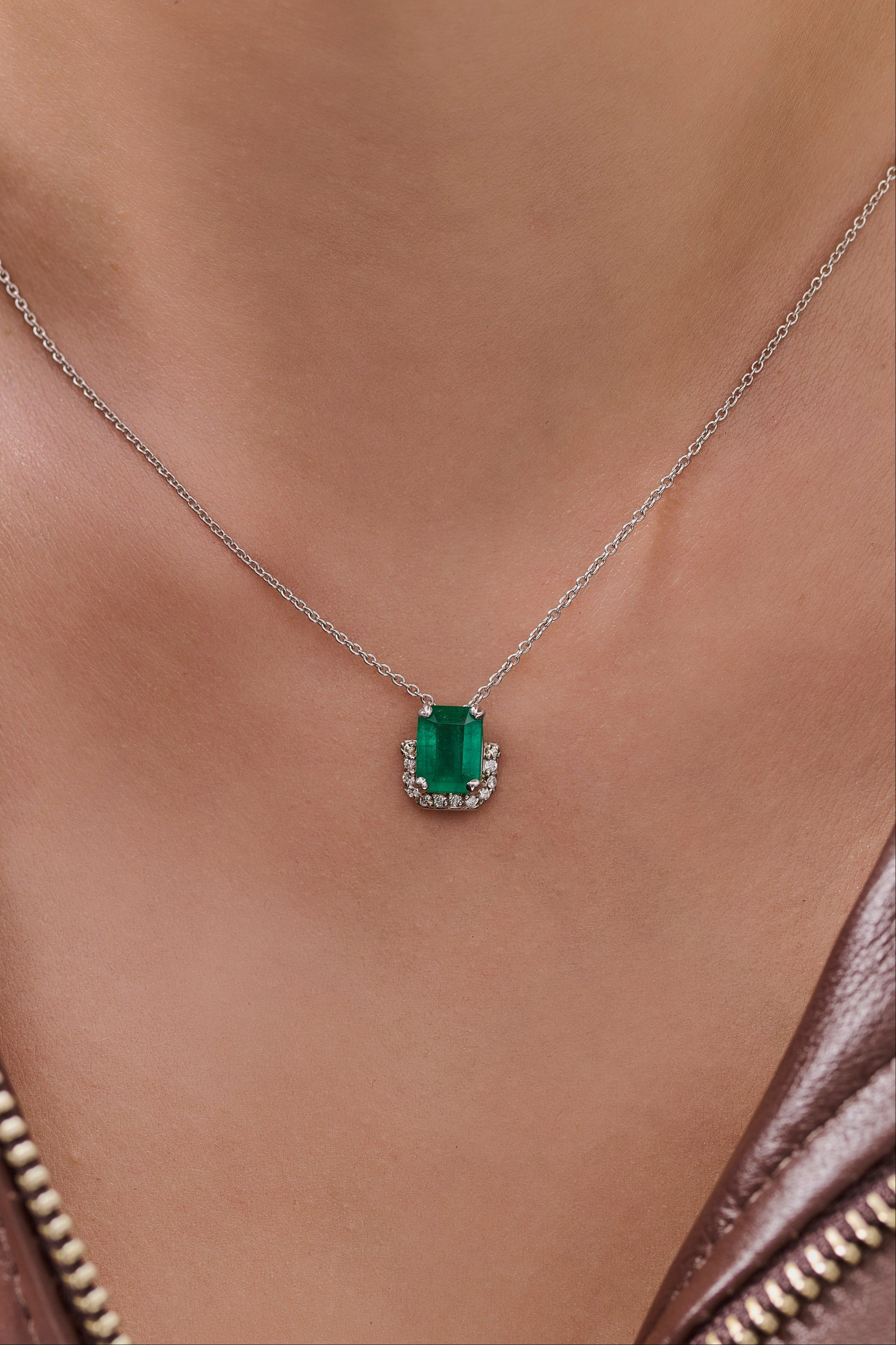 Clássico e atemporal, este colar em ouro branco 18K com corrente Cartier de 40 cm celebra a sofisticação das joias de herança. No centro, uma esmeralda natural de lapidação octogonal 6x8 mm revela o verde profundo que simboliza renovação e poder, enquanto 24 brilhantes de 0,009 pontos cada formam um halo de luz que valoriza ainda mais sua intensidade.